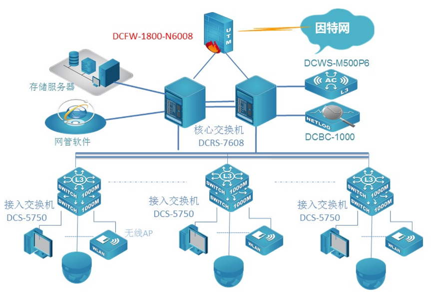 无线安全灵活:顺利获得无线控制器集中管理网络无线AP,实现无线用户无缝漫游;无线控制器还支持多种认证方式,实现无线用户的安全接入。